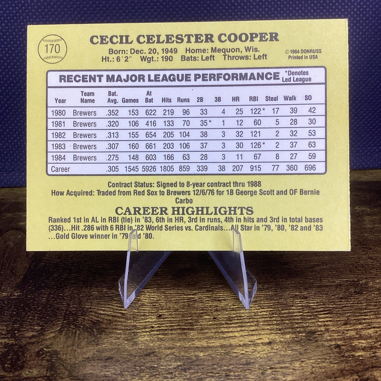 1985 Donruss - Cecil Cooper #170 Milwaukee Brewers
