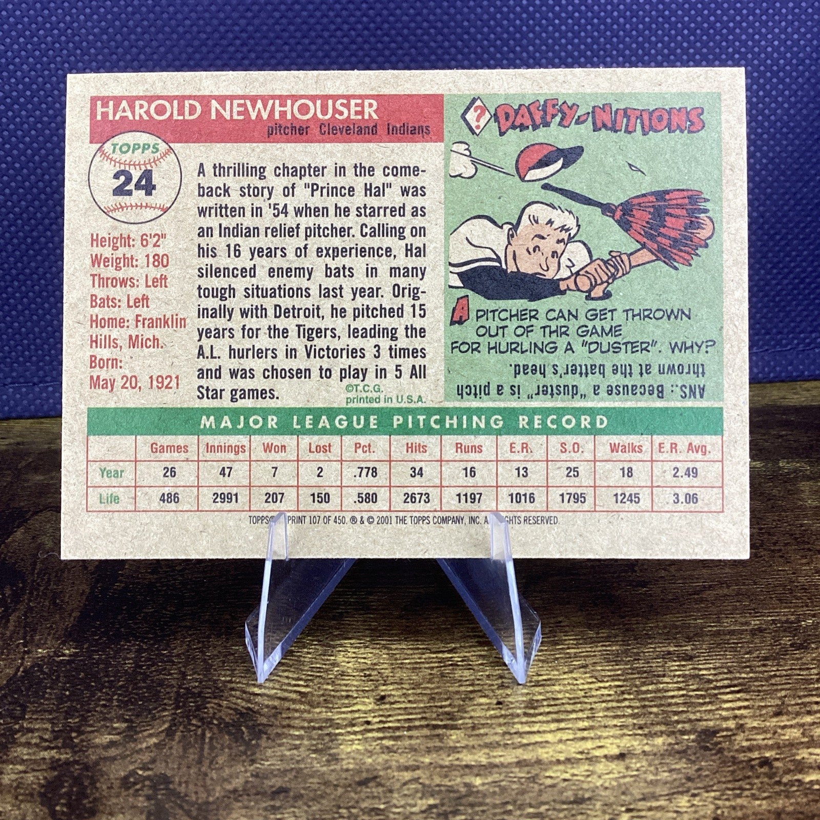 The product is a 2001 Topps Archives #107 Hal Newhouser trading card featuring the MLB player from the Cleveland Indians. This standard-sized card is made of card stock and is part of the 2001 Topps Archives set. The card is not autographed and is in English language, manufactured by Topps in the United States. It is a base variety sports trading card perfect for baseball fans looking to add a piece of history to their collection.