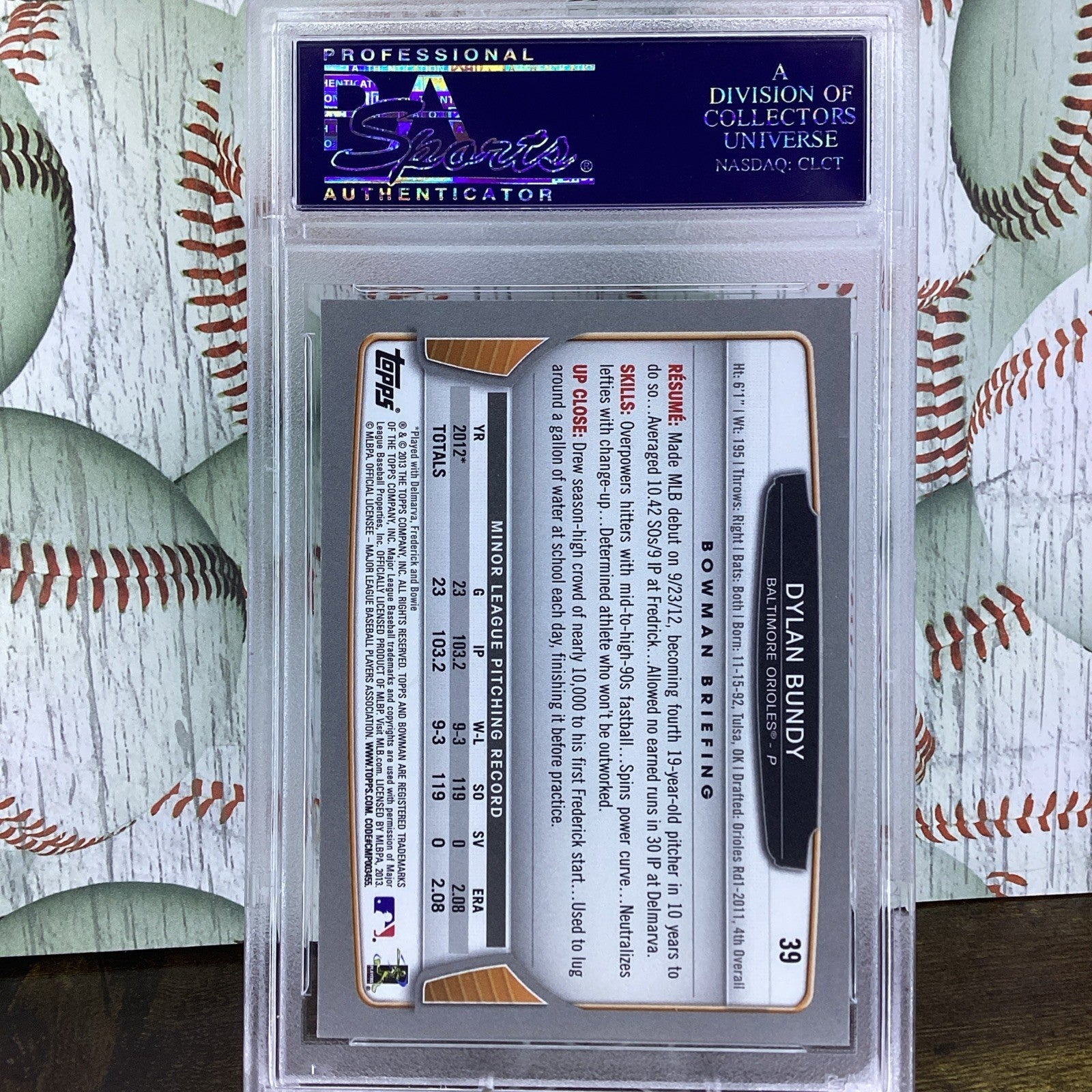 2013 Bowman 39 Dylan Bundy Gold PSA EX-MT 6 Orioles