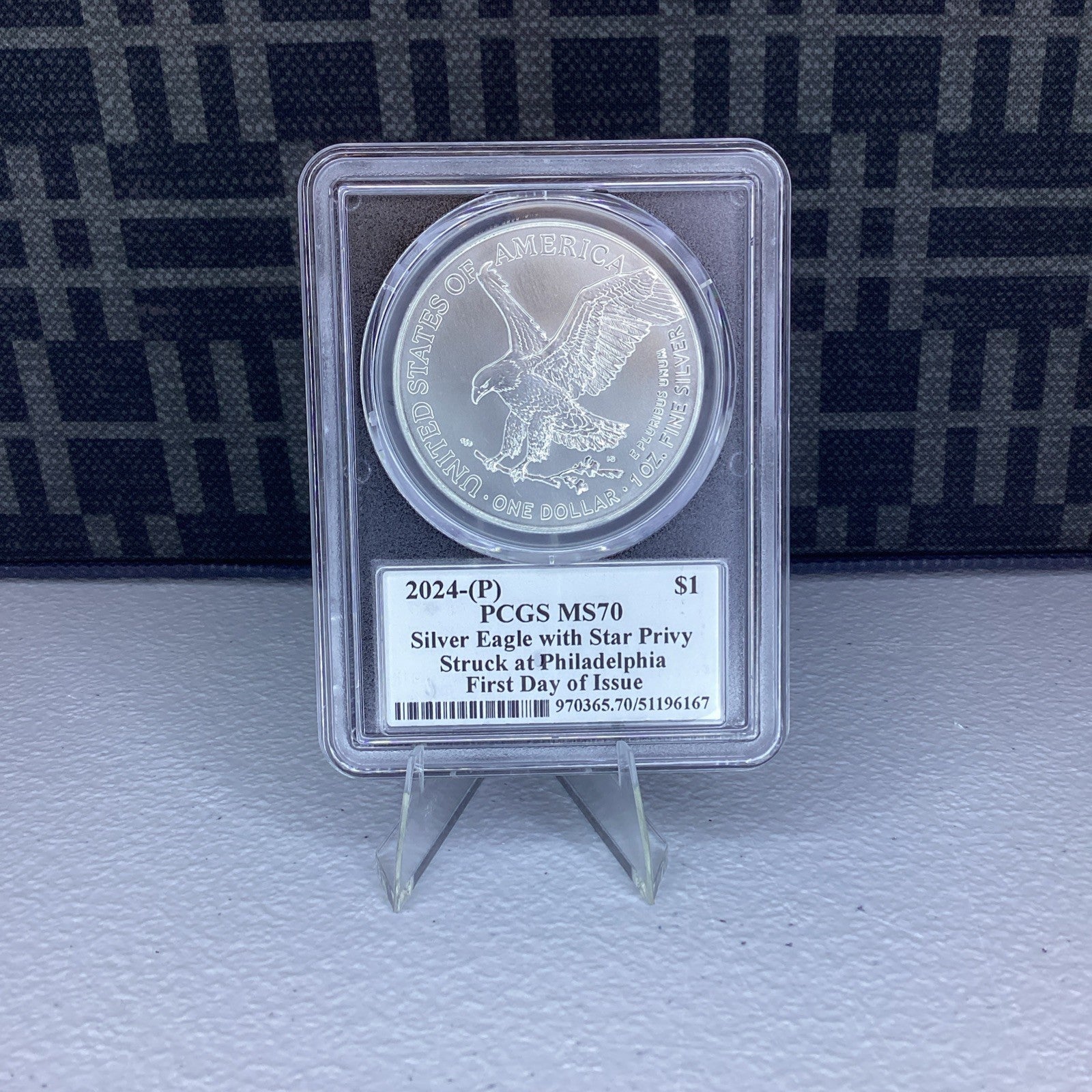 2024 (P) SILVER EAGLE PCGS MS70 STAR PRIVY FIRST DAY OF ISSUE FDI DAMSTRA SIGNED