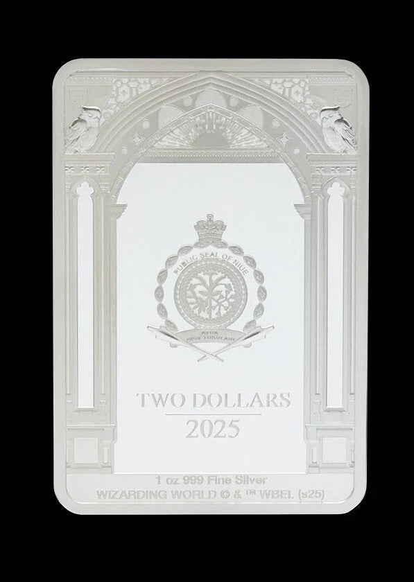 The 2025 Niue Harry Potter Magical Creatures Werewolf 1 oz Silver Colorized Proof is a stunning silver bar featuring a werewolf design inspired by the popular Harry Potter series. Minted by the New Zealand Mint with a fineness of 0.999, this collectible piece contains 1 oz of silver and is officially licensed by Warner Bros. The bar is a unique addition to any coin or silver collection, showcasing intricate detailing and vibrant colors that bring the magical creature to life. Perfect for fans of both Harry Potter and silver bullion, this limited edition piece is a must-have for avid collectors.