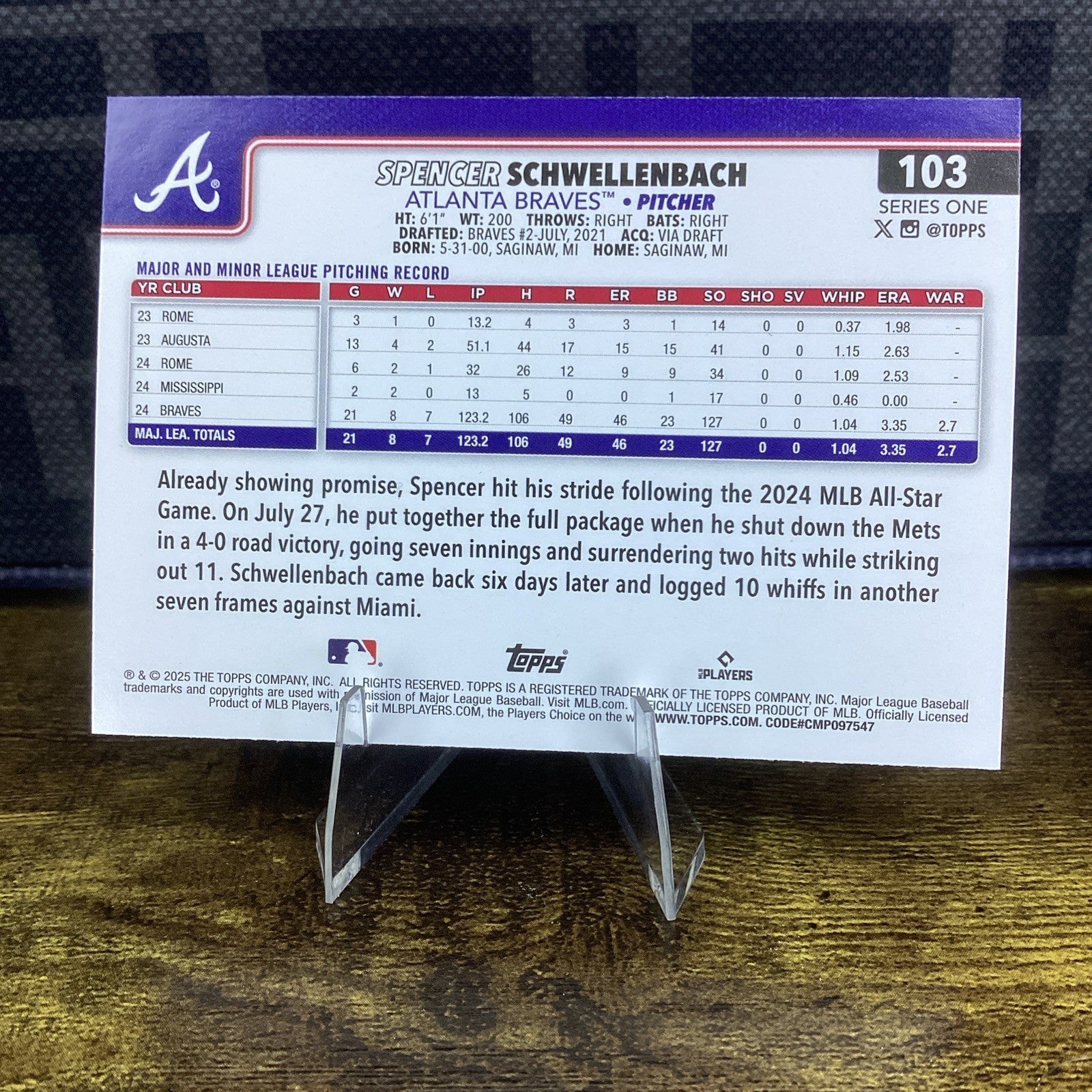 2025 Topps Series 1 - #103 Spencer Schwellenbach (RC) - Atlanta Braves
