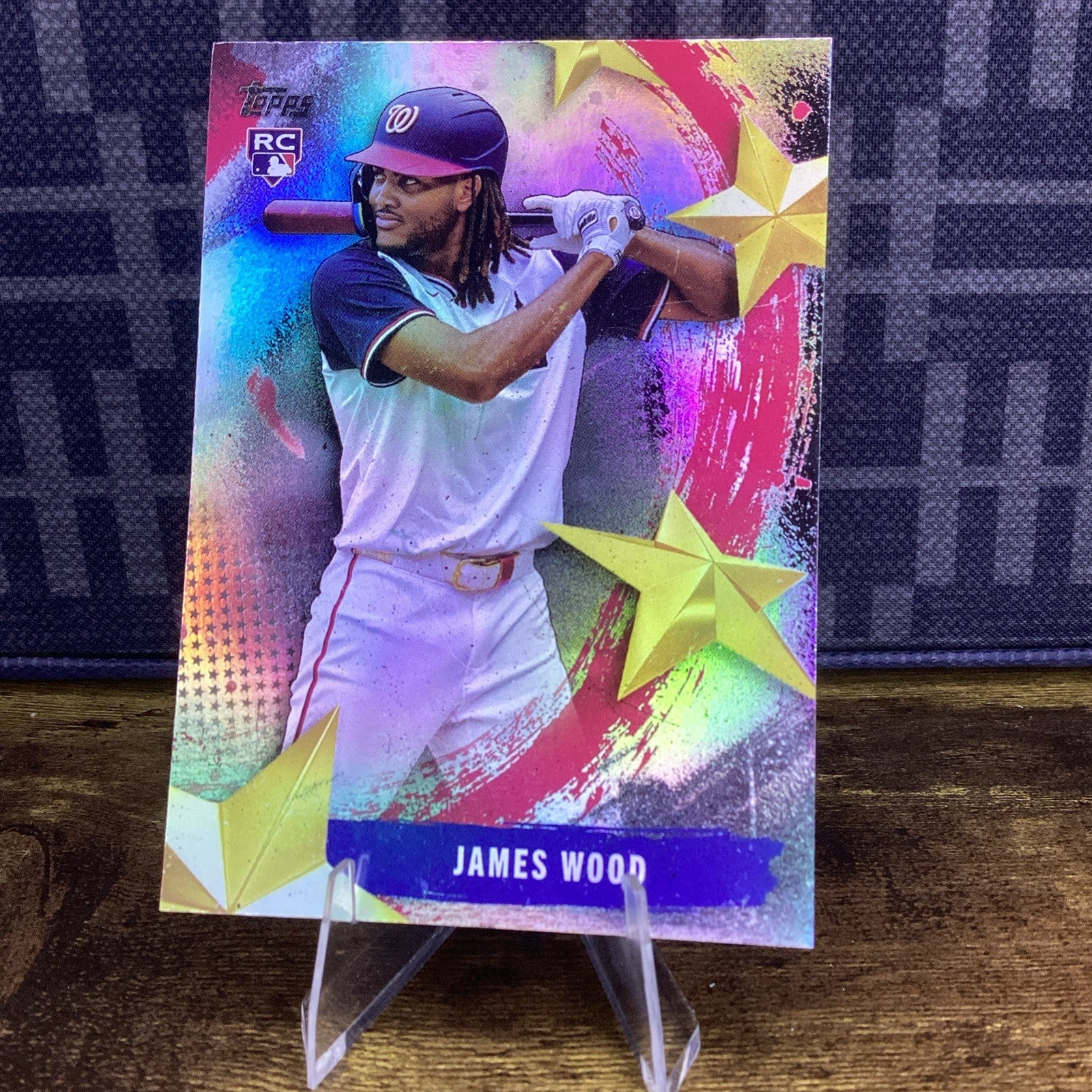 The 2025 Topps #SMLB-18 James Wood Stars of MLB trading card is a standard size sports trading card featuring James Wood, a player from the Washington Nationals. Manufactured by Topps, this English-language card is part of the Stars of MLB insert set for the 2025 season. It is a non-autographed, non-rookie card that celebrates Wood's talent as a rising star in Major League Baseball. A must-have for baseball card collectors and fans of the Washington Nationals.