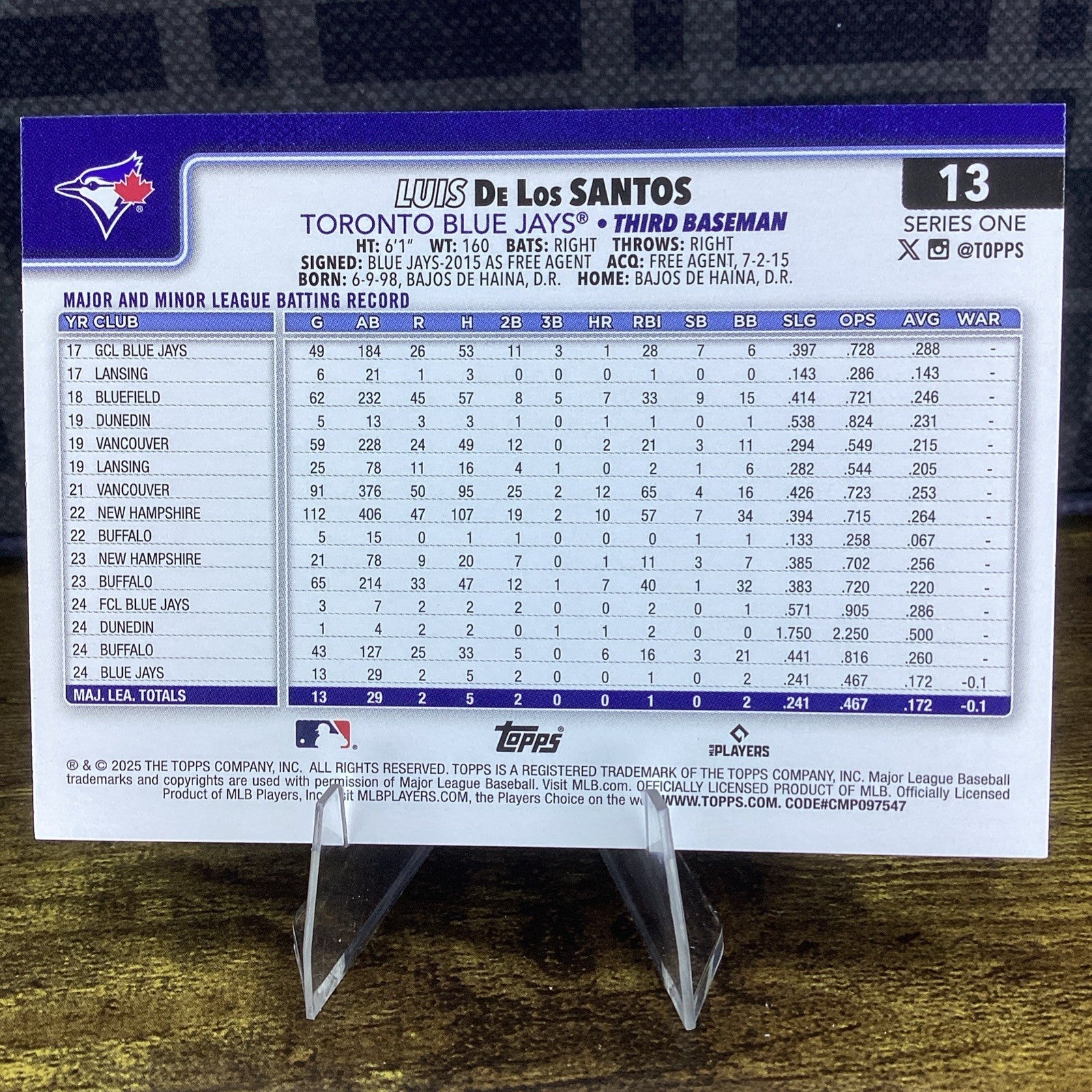 TORONTO 2025 Topps MLB LUIS DE LOS SANTOS PALM TREE FOIL Borde #13 RC
